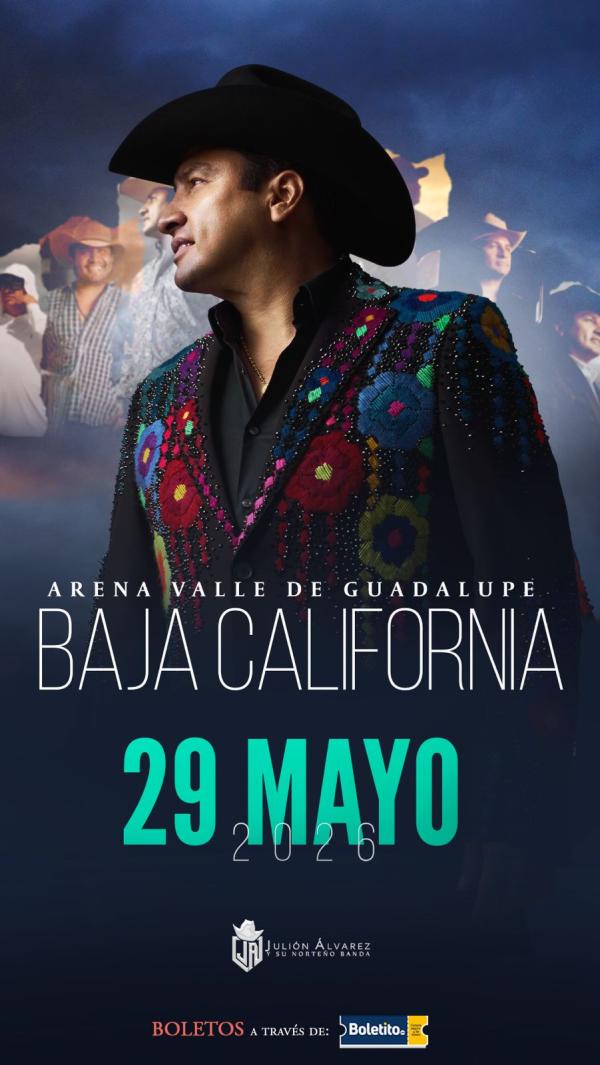 Descripción:Ven a vivir una experiencia increíble con JULIÓN ÁLVAREZ Y SU NORTEÑO BANDA en ENSENADA desde la ARENA VALLE DE GUADALUPE este 29 de mayo de 2026!